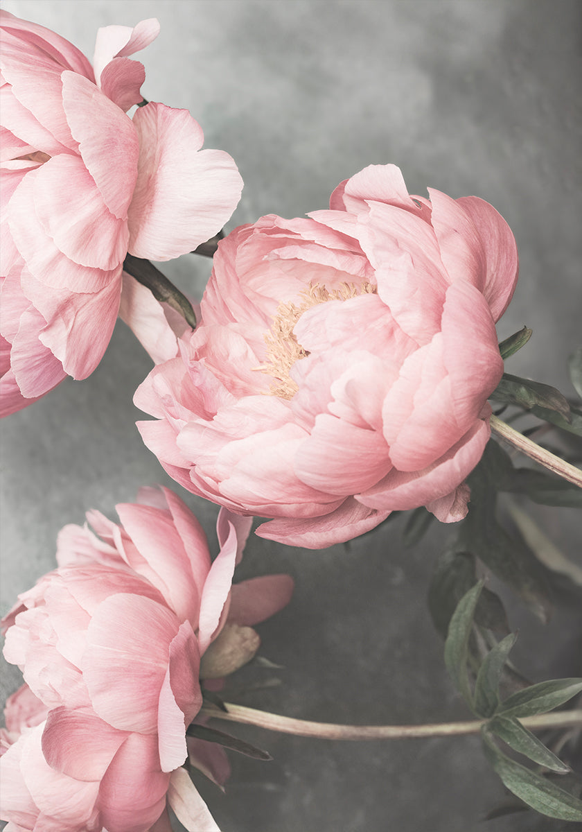 Cette élégante photographie florale capture des pivoines rose tendre en pleine floraison, avec des pétales délicats se déployant avec des détails gracieux. Le fond discret accentue les couleurs pastel romantiques et crée une œuvre d’art botanique intemporelle qui respire la beauté, la fraîcheur et la sophistication naturelle.