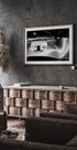 Cette superbe affiche en noir et blanc montre l'avant d'une voiture de course vintage avec l'emblème distinctif « 1c ». Les courbes élégantes, les reflets polis et les détails intemporels capturent l'âge d'or du sport automobile et en font une œuvre d'art sophistiquée pour les amateurs de voitures classiques.
