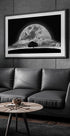 Cette œuvre d’art surréaliste en noir et blanc montre un arbre solitaire sous une pleine lune éclatante, avec des oiseaux planant au-dessus d’un ciel nocturne de rêve. Les nuages dérivent à travers la scène lumineuse, unissant fantaisie et nature dans une composition saisissante qui capture le mystère, l'émerveillement et l'élégance intemporelle.