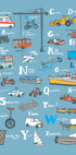 Cette affiche ABC ludique présente aux enfants le monde des transports, des ambulances et avions aux yachts et zeppelins. Présentant des illustrations colorées de véhicules terrestres, maritimes et aériens, c'est une œuvre d'art attrayante et éducative qui rend l'apprentissage de l'alphabet amusant et inspirant pour les enfants.
