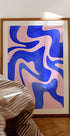 Cette œuvre d’art abstraite audacieuse présente des formes d’onde bleues fluides sur un fond rose tendre. Les courbes dynamiques créent du rythme et du mouvement et combinent le côté ludique et le minimalisme moderne. Une pièce distinctive qui ajoute une énergie fraîche et une touche artistique à tout espace moderne.