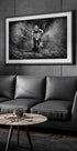 Un motif dramatique en noir et blanc représentant un pilote de motocross fonçant dans la boue et l'eau. L’affiche rayonne de vitesse, d’énergie et d’adrénaline brute. L'éclaboussure explosive frappe le pilote dans un moment d'intensité, ce qui en fait une déclaration distinctive pour les fans de sport automobile et les amateurs d'images puissantes.
