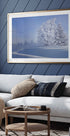 Une matinée d'hiver fraîche se déroule dans des tons bleus calmes, où le givre habille les branches des arbres et où une légère brume plane sur le paysage gelé. La lumière est douce et claire, et le froid frissonne dans l’air. « Matin croustillant » de VéroniqueS capture le moment où le monde s'arrête et où le calme semble infini. Parfait pour une ambiance hivernale dans la maison.