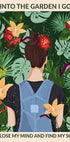 Cette œuvre représente une personne en denim entourée d'une verdure luxuriante et de fleurs vibrantes, évoquant les thèmes de la nature, de la paix et de la découverte de soi. Le texte met l'accent sur la recherche de la paix et de l'âme dans un jardin. Parfait pour la pleine conscience et le jardinage.