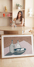 Plongez-vous dans une nature morte calme et moderne : Bottles de Dan Hobday combine des teintes douces de beige et de rose avec des coups de pinceau confiants qui suggèrent une collection de bouteilles aux formes graphiques et minimalistes. La texture pittoresque et la composition aérienne confèrent à la pièce un calme élégant, chaleureux et moderne. Parfait pour une décoration scandinave.