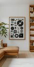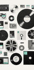 Une composition nostalgique de supports et de formats de stockage vintage tels que des disques vinyles, des cassettes, des disquettes, des CD et des rouleaux de film. Cette œuvre d'art célèbre l'évolution de la technologie et de la musique et apporte un charme rétro à un décor moderne.