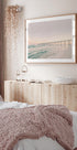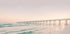 Une vue côtière paisible avec une longue jetée s'étendant dans la mer, baignée de douces couleurs pastel au coucher du soleil. Les vagues et le ciel immobile créent une atmosphère calme, parfaite pour évoquer la paix et l’harmonie.