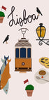 Faites un voyage visuel à Lisbonne : un tramway jaune d'or serpente entre façades pastel, azulejos bleus et collines escarpées, tandis que câbles et lampadaires dessinent le ciel. Tons chauds, brise marine et vie des cafés et bars à sardines se conjuguent dans un motif graphique et intemporel qui capture l'âme de la ville. La lumière du soleil et la vue sur le Tejo complètent le rêve du voyage.