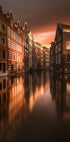 Amsterdam Evening de Luca Rebustini dépeint le calme du crépuscule sur les canaux de la ville. Des maisons étroites à pignons se dressent côte à côte, se reflétant dans l'eau sombre, tandis que les fenêtres chaudes et les rues pavées suggèrent la vie derrière les façades. Un hommage atmosphérique à l'architecture intemporelle d'Amsterdam. Parfait pour apporter des souvenirs de voyage et de la mélancolie nordique dans la pièce.