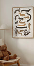 Une illustration charmante et ludique de teckels dans diverses positions : s'étirer, courir et se détendre. Les tons chauds de la terre et le style dessiné à la main rendent cette œuvre d'art parfaite pour les amoureux des chiens, les chambres d'enfants ou pour tous ceux qui aiment l'art mural amusant et convivial.