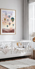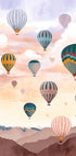 Une affiche de rêve avec des montgolfières colorées flottant au-dessus d’un ciel pastel et de sommets montagneux. L'œuvre d'art exprime un sentiment d'aventure, de liberté et de joie – idéale pour les chambres d'enfants, les amateurs de voyages ou comme décoration murale inspirante.