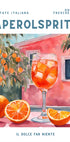 Une aquarelle rafraîchissante d'Aperol Spritz, représentant un verre lumineux de l'emblématique cocktail italien entouré d'oranges juteuses et d'un jardin estival. Cette œuvre d’art capture l’essence de la dolce vita et est parfait pour les cuisines, les salles à manger et les bars élégants.