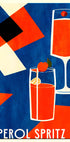 Une affiche graphique audacieuse et colorée du cocktail emblématique Aperol Spritz, présentant des formes géométriques en orange vif, bleu, noir et blanc. Avec son design moderniste et son énergie ludique, l'œuvre d'art capture l'essence de la culture de l'apéritif italien, parfaite pour les cuisines, les bars et les espaces sociaux.