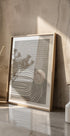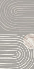 Une affiche abstraite minimaliste avec des motifs de lignes arquées fluides en beige doux sur un fond gris sourd, mis en valeur par un cercle texturé. La géométrie organique donne une expression calme et équilibrée, idéale pour les intérieurs Japandi, nordiques ou minimalistes modernes.