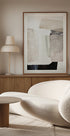 Une affiche abstraite minimaliste de Dan Hobday avec de douces couches de coups de pinceau dans des tons neutres. Les formes texturées créent une composition équilibrée et moderne, parfaite pour les intérieurs modernes, le design scandinave ou dans le cadre d'un mur d'images apaisant.
