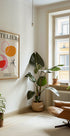 Une affiche abstraite moderne avec des formes graphiques saisissantes en rouge, rose et orange avec des détails de lignes noires. Conçue dans un style minimaliste avec le texte « Atelier – Museum of Modern Art », cette œuvre capture l'essence du design moderne et s'intègre parfaitement aux intérieurs élégants.
