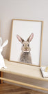 Un joli portrait d’un bébé lapin capturé sur un fond blanc pur. La fourrure douce, les oreilles dressées et le look innocent rendent cette pièce parfaite pour les chambres d'enfants, les crèches ou pour tous ceux qui aiment les jolis portraits d'animaux.