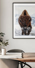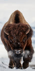 Une puissante photographie naturelle d’un bison chargeant dans la neige. Avec son souffle glacial et sa face enneigée, cette image spectaculaire capture la force brute, l'endurance et la présence majestueuse de l'un des animaux les plus emblématiques d'Amérique du Nord.