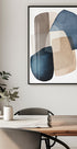 Une aquarelle abstraite moderne avec des formes géométriques superposées dans des tons bleus, beiges et terre. Les textures picturales douces et les couches transparentes créent de la profondeur et de l'harmonie, ce qui en fait une œuvre d'art parfaite pour les intérieurs modernes et minimalistes.