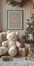 Une maison en pain d'épices bleue de conte de fées se dresse au milieu d'un paysage hivernal, décorée de cannes à sucre, de flocons de neige et de détails glacés. Les lumières chaudes des fenêtres invitent au confort, tandis que le fond clair et calme souligne la simplicité graphique du motif. Une charmante affiche de Noël de Talitha McQueen. Parfait pour une chambre d'enfant, un hall d'entrée ou un salon prêt à créer une ambiance de Noël cosy.