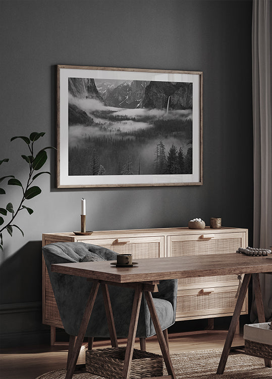 Brouillard flottant dans la vallée de Yosemite par Hong Zeng - Papier de qualité supérieure avec une surface mate lisse et un toucher élégant. La finition mate réduit l'éblouissement et donne un look raffiné et intemporel. Solide et durable pour une utilisation durable, idéal aussi bien pour les environnements professionnels que pour les affichages décoratifs.