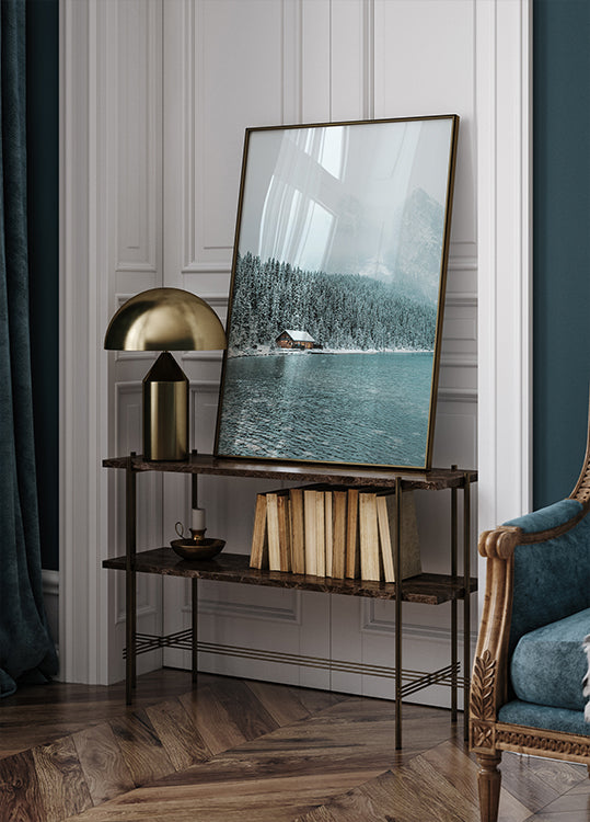 Affiche de la Cabane au bord d'un lac en hiver