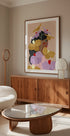 Caché derrière des fleurs jaunes et violettes Poster