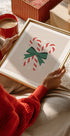 La joie de Noël réunie dans une seule affiche : des cannes de bonbon rayées, rouges et blanches nouées avec un ruban de satin, flottant devant un fond doux et hivernal. Les éclats de lumière chatoyants et les nuances chaudes évoquent les souvenirs d'enfance de décembre, les décorations festives et l'odeur de menthe poivrée. Motif d'Andreas Magnusson. Parfait pour le salon, la cuisine et le hall d’entrée – prêt à répandre l’esprit de Noël.