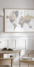 Carte du monde aquarelle avec villes, Gouri par Rosana Laiz Blursbyai - Papier de qualité supérieure avec une surface mate lisse et un toucher élégant. La finition mate réduit l'éblouissement et donne un look raffiné et intemporel. Solide et durable pour une utilisation durable, idéal aussi bien pour les environnements professionnels que pour les affichages décoratifs.