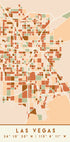 Une carte évocatrice de Las Vegas interprétée par Emiliano Deificus : un réseau de rues étroitement tissé et des boulevards distinctifs dessinés par des lignes noires profondes sur des tons chauds de terre. Les couleurs du désert rencontrent la géométrie précise de la ville, et les petits détails tels que les rivières, les quartiers et les coordonnées créent une expression élégante et moderne. Les contrastes et les textures soulignent le rythme de la ville.