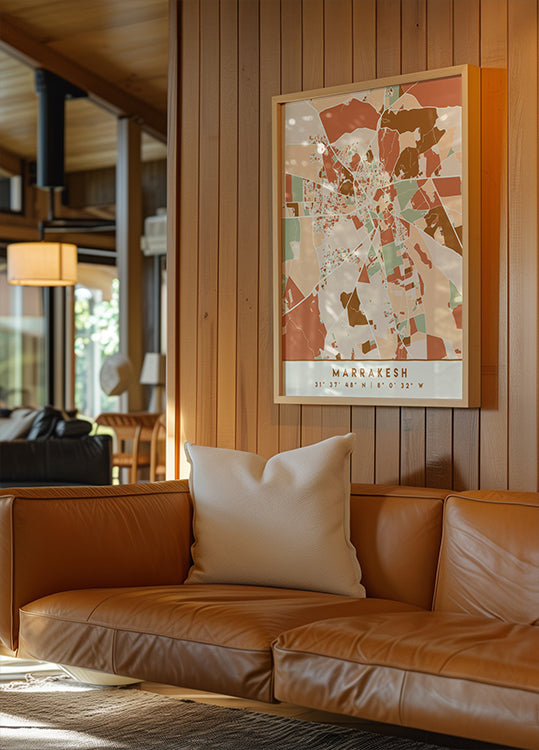 Black Maps Earth Tones 47 d'Emiliano Deificus dévoile une vision graphique et évocatrice d'un plan de ville dans des tons chauds de terre. Les textures organiques rencontrent des grilles de rues nettes et des coordonnées suggérées, évoquant les images des labyrinthes de Marrakech et le rythme de l'Afrique du Nord. Un point focal sophistiqué et calme pour les espaces modernes !