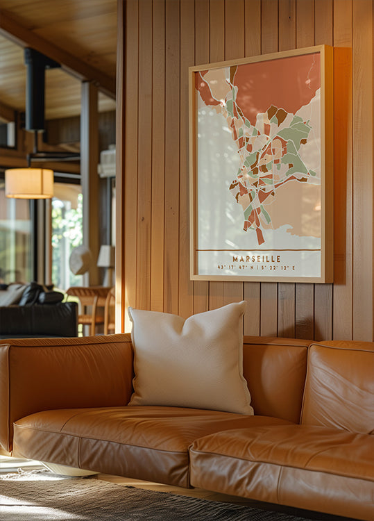 Black Maps Earth Tones 48 d'Emiliano Deificus est une carte stylisée de la ville de Marseille dans des tons chauds de terre sur un noir profond. Les lignes épurées et le calme graphique capturent le pouls de la ville et la géométrie côtière sans bruit, et offrent une expression sophistiquée et intemporelle qui élève tout, du salon au bureau. Parfait pour le minimalisme nordique.