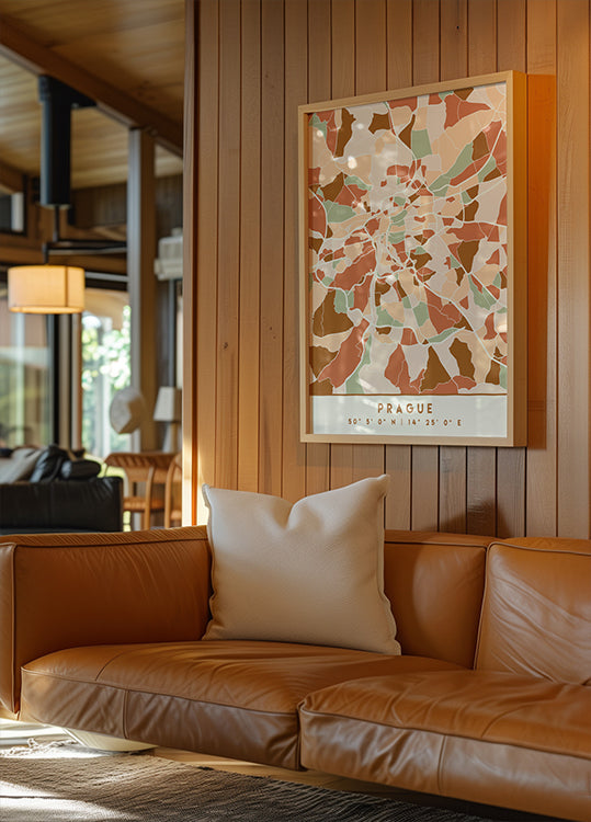 Une affiche cartographique atmosphérique de Prague, où le fond noir et les nuances terreuses soulignent le rythme de la ville. Les rues sinueuses et les courbes douces de la Vltava dessinent un motif graphique et élégant. Créé par Emiliano Deificus, qui unit modernité et histoire dans une expression urbaine intemporelle. Une expression calme et minimaliste dans des tons terreux.