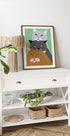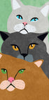 Une illustration audacieuse et moderne de trois chats stylisés empilés dans un portrait ludique. Avec des moustaches expressives, des yeux vifs et un design graphique coloré, cette œuvre d'art est parfaite pour les amoureux des chats et ajoute une ambiance originale et moderne à n'importe quelle pièce.