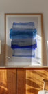 Une affiche abstraite apaisante avec des coups de pinceau horizontaux superposés dans des tons de bleu et de gris sur un fond blanc pur. La texture picturale et les transitions douces créent une sensation de calme et de profondeur, parfaite pour les intérieurs modernes, la décoration scandinave ou les murs de galerie minimalistes.