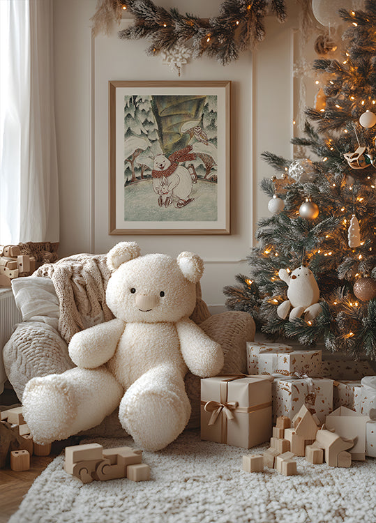 Créé par Olena Kovalova : Créatures du Nord réunit un ours sympathique et un lapin curieux dans un pays enneigé du Nord. Des nuances discrètes de rouge, de vert et de sarcelle et une touche vintage confèrent une atmosphère chaleureuse de Noël, tandis que les détails discrets invitent à la présence et au confort pendant les journées calmes de l'hiver. Parfait pour les coins cosy de Noël.
