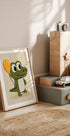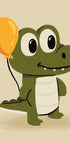Une illustration joyeuse et ludique d’un joli crocodile tenant un ballon orange. Avec ses grands yeux amicaux et ses textures douces, cette œuvre d'art apporte une sensation de plaisir et de légèreté - parfaite pour les chambres d'enfants, les salles de jeux ou les espaces conçus pour inspirer la joie et l'imagination.