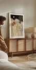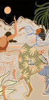 Danse au clair de lune Poster capture un moment de pure joie et de liberté alors que deux femmes se déplacent gracieusement sous la lueur chaleureuse de la pleine lune. Avec une palette onirique de nuances de beige terreux, de noir profond et de vert luxuriant, la nature s'unit à la forme humaine expressive. Des lignes lâches et picturales et des ombres texturées confèrent à l’œuvre une qualité dynamique, presque éthérée. Des tissus fluides avec des rayures et des motifs de feuilles se balancent avec le mouvement, tandis que les plantes environnantes et une urne classique ajoutent de l'élégance. Cette œuvre d'art dégage un esprit insouciant et constitue une pièce maîtresse impressionnante dans les intérieurs bohèmes, modernes ou inspirés de la nature.