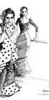 Le pouls du flamenco est capturé dans un sketch vivant de deux danseurs en robes à pois, pris au milieu d'un swing dramatique. Les lignes expressives et sommaires et les références espagnoles à Séville et Madrid confèrent au motif énergie et charme. Un hommage à l'amitié, au rythme et au style - par Awol Art Alex. Les points, les volants et l'attitude font de cette pièce un accroche-regard dans n'importe quelle pièce.
