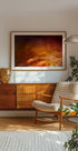 Une œuvre d'art abstraite flamboyante qui mélange des nuances de rouge, d'orange et d'or, évoquant à la fois l'écoulement de l'eau et l'intensité du feu. Avec des tourbillons picturaux et des textures douces, la pièce rayonne de chaleur, de passion et d’énergie, parfaite pour les intérieurs audacieux ou comme pièce maîtresse dramatique.