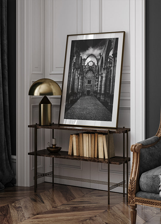 Entrez dans la grandeur sans toit de l'Igreja do Carmo de Lisbonne, capturée en noir et blanc saisissant par Mike Kreiten. Les arches gothiques s'élèvent sur le ciel ouvert, leurs nervures brisées et leur symétrie solennelle évoquant des siècles d'histoire et une crainte silencieuse : une relique d'une beauté envoûtante où se rencontrent la lumière, l'ombre et le silence.