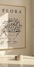 Un dessin au trait minimaliste et raffiné d'un vase rempli de fleurs, présenté dans un style élégant en noir et blanc. Alliant simplicité et sophistication, l’œuvre d’art fonctionne comme un imprimé floral intemporel pour les intérieurs modernes et contemporains.