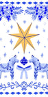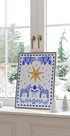 Une affiche hivernale atmosphérique d'inspiration folklorique par Aliya Putrus : une étoile dorée au centre entourée de flocons de neige, de baies et d'un nœud décoratif, avec un petit cheval Dala comme détail charmant. Les nuances de bleu, de blanc et de marron créent une ambiance de Noël scandinave, chaleureuse et nostalgique. Parfait pour le hall d'entrée, le salon ou la chambre d'enfant pendant les fêtes de fin d'année.