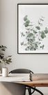 Une œuvre botanique minimaliste avec des feuilles d’eucalyptus sur un fond blanc épuré. Les ombres douces et les nuances naturelles de vert créent une œuvre d'art murale fraîche et apaisante, parfaite pour les intérieurs modernes, le design scandinave ou les espaces inspirés de la nature.