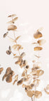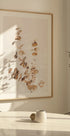 Une œuvre d'art botanique moderne présentant des branches d'eucalyptus dans des teintes dorées étincelantes sur un fond clair et brillant. L'effet de double exposition ajoute de la profondeur et de l'élégance, ce qui en fait une pièce maîtresse parfaite pour les intérieurs minimalistes, scandinaves et modernes.
