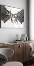 Deux orignaux se rencontrent face à face, leurs bois engagés dans un intense duel hivernal. En noir et blanc, la puissance brute, le souffle glacé et le scintillement tranquille de la neige sont soulignés, tandis que la tension vibre dans l'air. Le photographe nature Jim Cumming capture l'instant présent avec une clarté graphique et une présence dramatique – une beauté sauvage au bord du conflit.