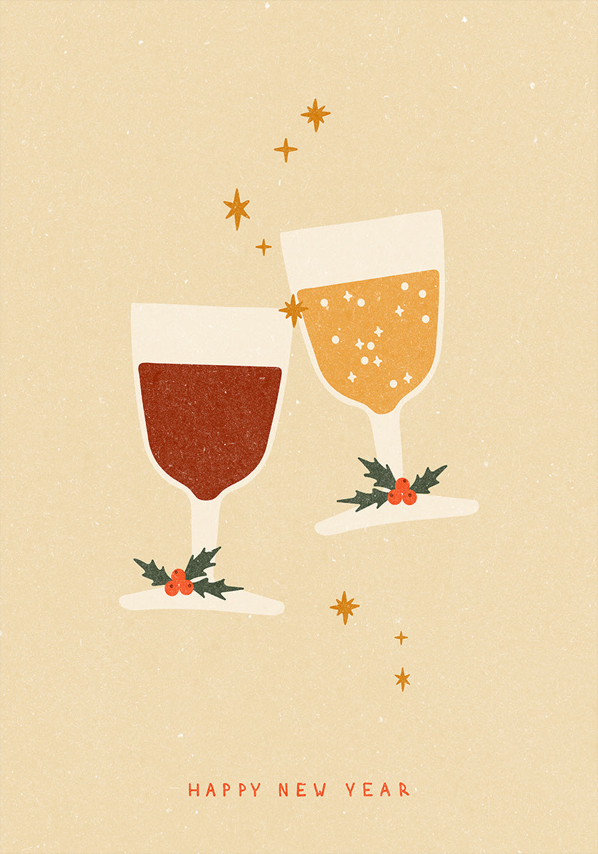 Une charmante illustration au style vintage : deux verres portent un toast, des bulles montent et des flocons de neige forment un décor festif et hivernal. Le motif allie humour et nostalgie et capture le moment où un souhait est formulé dans le tintement du verre - parfait pour Noël, le Nouvel An et les réunions chaleureuses. Accrochez-le dans le bar, la cuisine ou le salon.