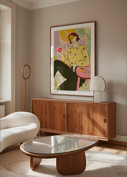 Woman With Apple de Sandra Poliakov - Papier de qualité supérieure avec une surface mate lisse et un toucher élégant. La finition mate réduit l'éblouissement et donne un look raffiné et intemporel. Solide et durable pour une utilisation durable, idéal aussi bien pour les environnements professionnels que pour les affichages décoratifs.