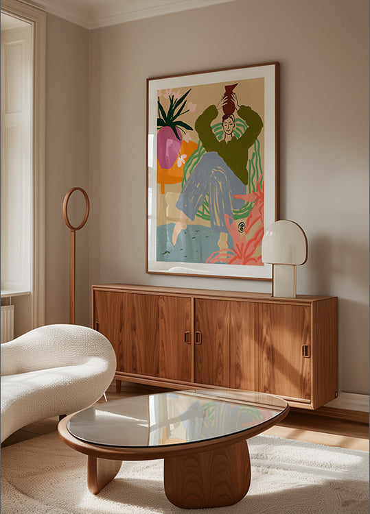 Woman With Vessel de Sandra Poliakov - Papier de qualité supérieure avec une surface mate lisse et un toucher élégant. La finition mate réduit l'éblouissement et donne un look raffiné et intemporel. Solide et durable pour une utilisation durable, idéal aussi bien pour les environnements professionnels que pour les affichages décoratifs.