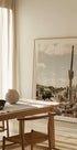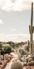Un paysage serein inspiré du désert, composé de grands cactus et de plantes succulentes luxuriantes sous un ciel doux et nuageux. Cette photographie botanique capture la beauté tranquille d'une ferme de cactus, avec des textures naturelles, des tons terreux et un calme intemporel. Une impression parfaite pour les amoureux de la nature et des plantes.